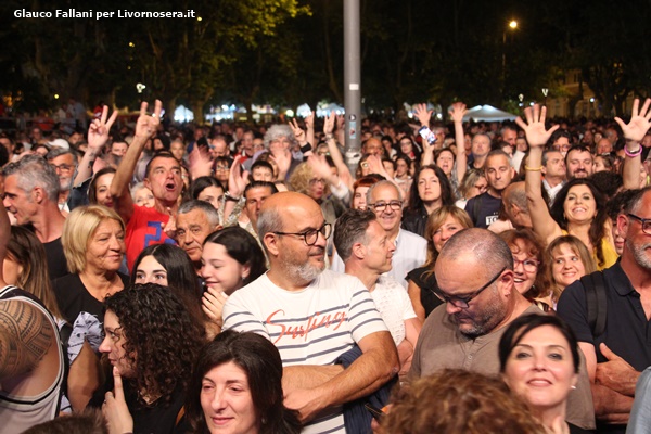 LIVORNO - Le mani alzate verso il cielo e poi tutti a saltare, cantando a squarciagola accompagnando la voce di Emiliano Geppetti e degli altri componenti della band dei Gary Baldi Bros che, ieri sera, 2 giugno, ha riempito fino all’inverosimile piazza Mazzini per la seconda serata di Straborgo.